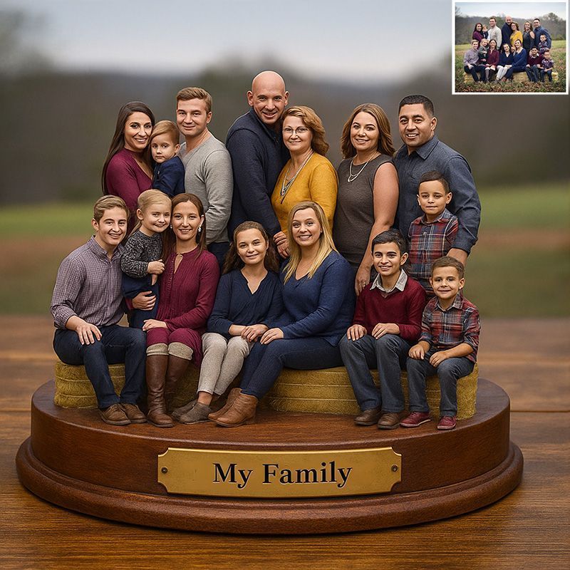 Unser talentiertes Team verwandelt Ihr Foto in ein charmantes Cartoon-Porträt und verarbeitet es zu einer Skulptur. Das Ergebnis ist ein personalisiertes Stück, das eine besondere Stimmung auf witzige und künstlerische Weise einfängt. Ob zum Geburtstag, Jahrestag, zu Weihnachten oder einfach nur, um zu zeigen, dass Sie an einen geliebten Menschen denken – dieses Stück wird Sie begeistern.